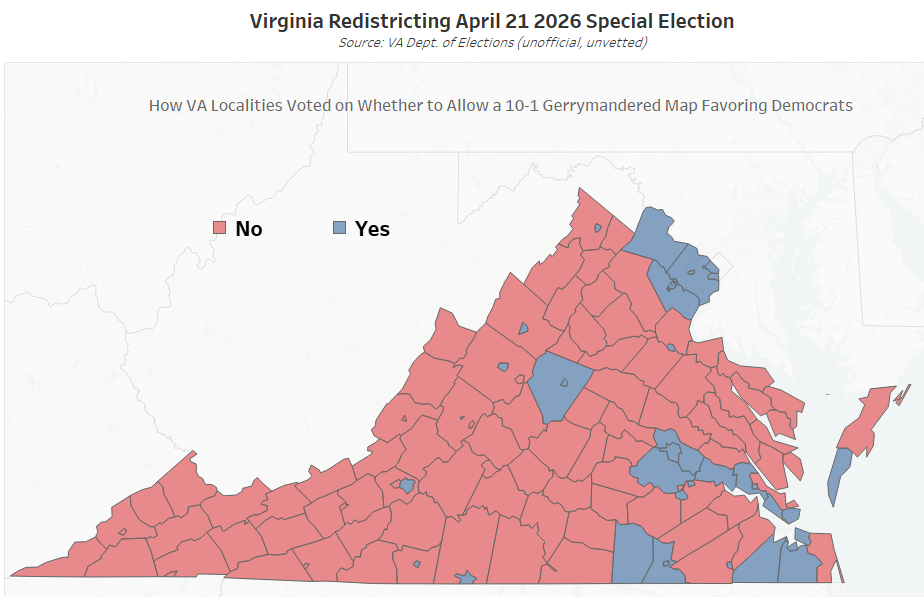 From the EPEC Team Newsletter: Unofficially at least, the “yes” votes squeaked out a win in Virginia’s April 21 Special Election on redistricting that is still wrapping up — if it does wrap up, that is. The results would allow Assembly Democrats to take a 6-5 (D-R) congressional map and…...
