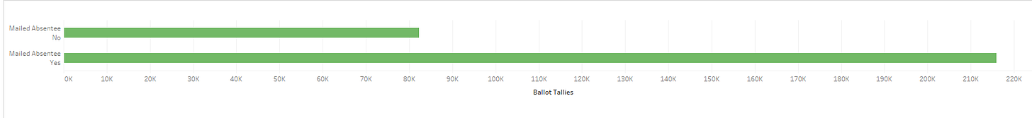 Another data point: When we sort the Department of Elections’ unofficial data from Election Night to only view Mail-in Ballots, we see 215,915 “yes” ballots to 82,278 “no” ballots.